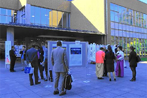 記念館前では、国際同窓会支部や在学生によるポスター発表も行われ、多数の来場者が同窓会支部ポスターの活発な活動状況に見入っていました。