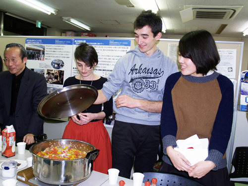 2月4日午後、グリシッチ駐日セルビア大使が森田学長を表敬訪問され、国際同窓会ベオグラード支部の設立報告と、セルビアと日本との交流についての意見交換が行われました。また夕刻には、岡山大学城下ステーションで、文学部の鐸木先生がセルビア料理の会を主催。セルビア留学生が作る鍋を囲んで、大使、学長、荒木理事ほか市民会員の方々も交流を深め、とても心温まる会となりました。
