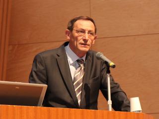 シンポジウムでは、ストラスブール市のロベルト・ヘルマン第一助役が基調講演。都市と大学が一体となったまちづくりを行いながら経済戦略においても協働し、都市全体の成長を目指していることを紹介しました。続いてストラスブール政治学院のシルヴァン・シルマン院長も講演し、欧州公共行政連合の設立を通じて、国、地方公共団体、高等教育機関の連携による人材養成が実現していると説明しました。