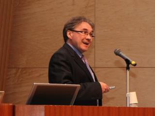 | 基調講演するヘルマン第一助役 | 講演するシルマン院長 |
