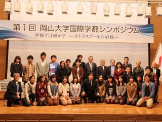 本学地域総合研究センターは11月6日、フランス・ストラスブールの事例を基に大学と地域の協働のまちづくりを学ぶ「第1回岡山大学国際学都シンポジウム 学都とは何か?-ストラスブールの挑戦-」を、創立五十周年記念館で開催しました。