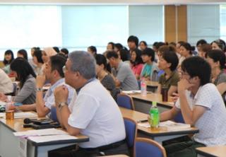 | 日本で感動したエピソードを写真で紹介 | 熱心に聴講する参加者 |