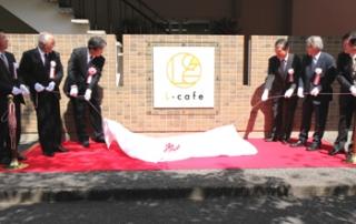 | 英語であいさつする森田学長 | L-cafe看板の序幕 |