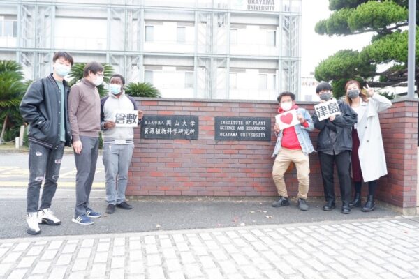 岡山大学国際同窓会では2021年11月12日(金)、留学生交流会を岡山大学資源植物科学研究所で開催し、津島キャンパスからはインドネシアとマラウイの留学生2名、資源植物科学研究所からはロシアと中国の留学生2名、そのほかボランティア日本人の学生1名および岡山大学国際部関係者が参加しました。