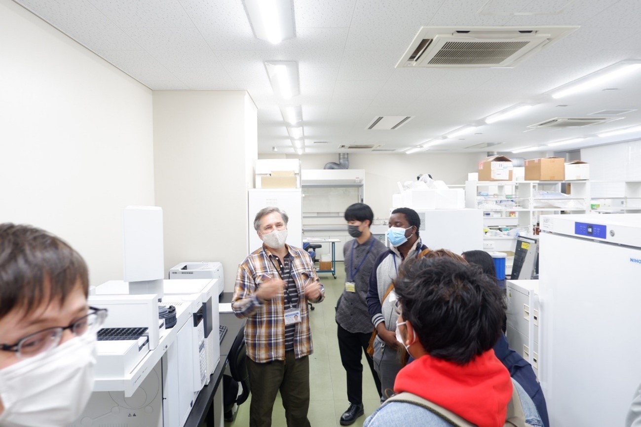 交流会では、資源植物科学研究所のガリス・イバン教授から、研究所の歴史や研究内容、設備について説明いただいた後、参加者はイラスト伝言ゲームで国籍を超えて盛り上がり、異文化への理解と留学生同士の親睦を深めることができました。